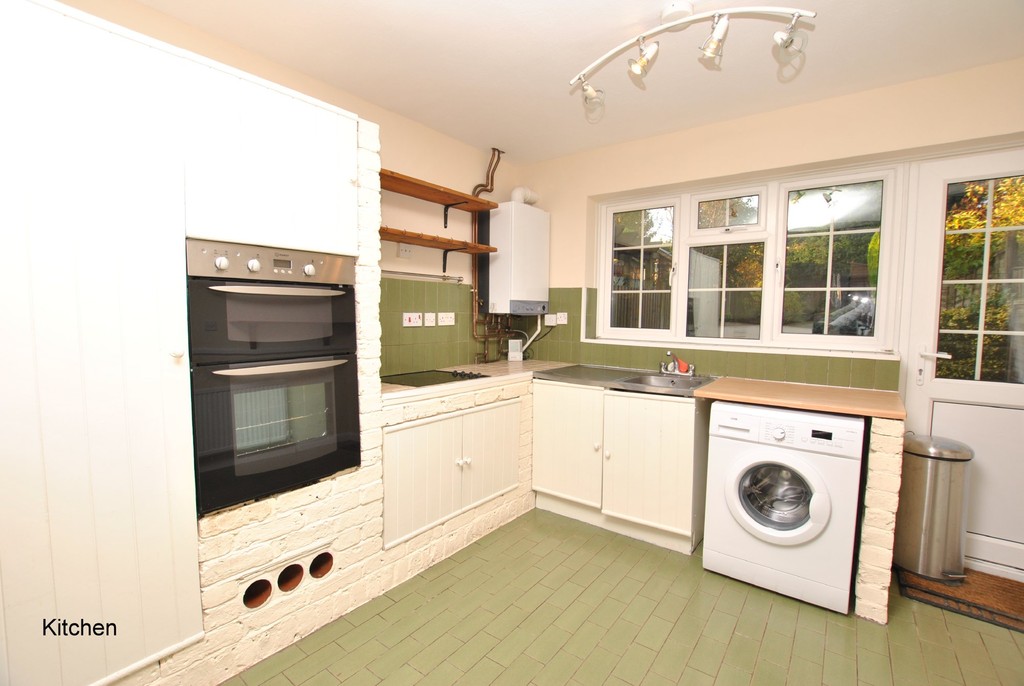 KITCHEN 12' 0" x 11' 8" (3.67m x 3.56m) Range of base and wall units with contrasting work surfaces, stainless steel sink unit, electric hob, twin electric ovens, Space and plumbing for washing machine, wall mounted gas boiler. Door leading to the west facing garden.